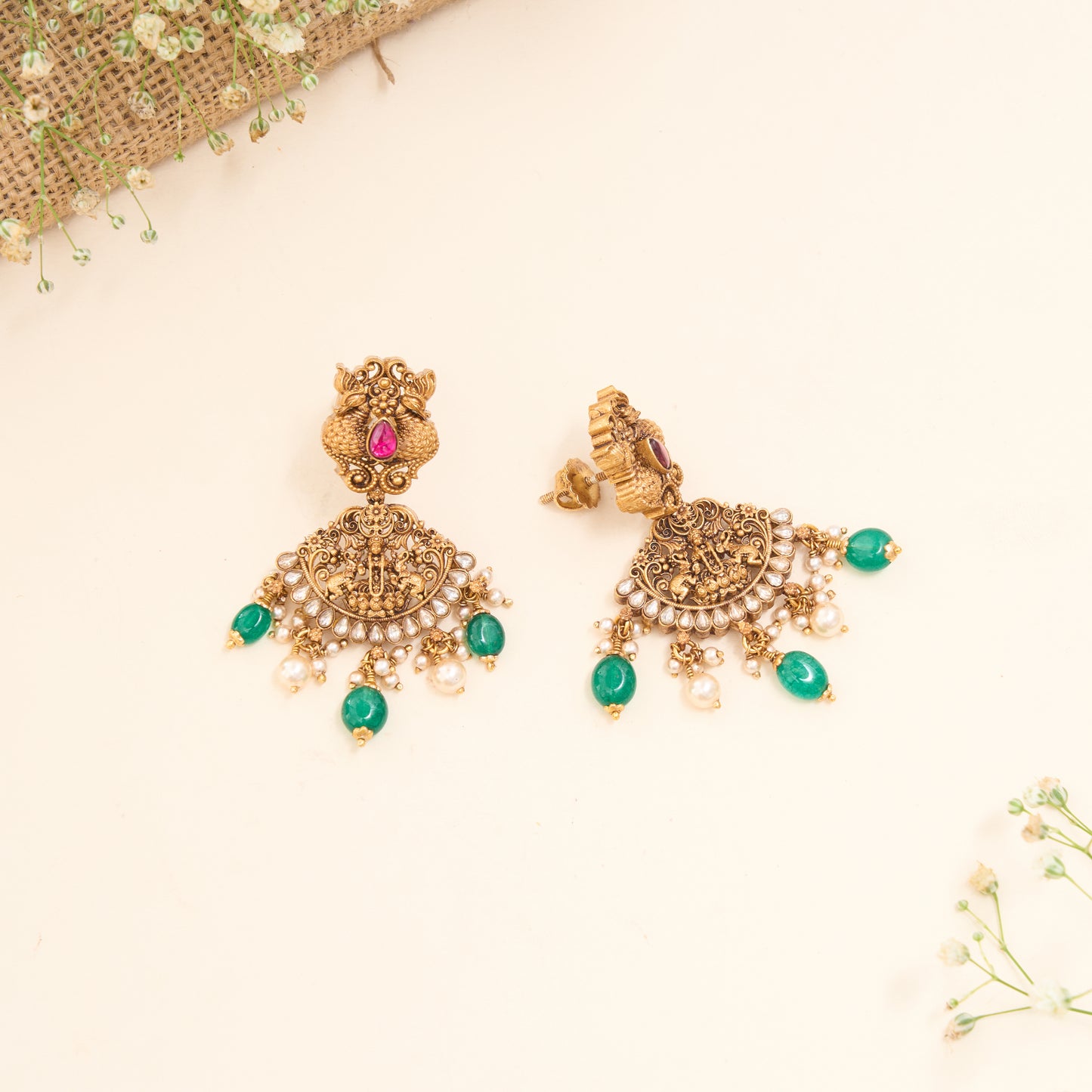 Blossom Peacock With Lakshmi 3D Gold Plated Earring