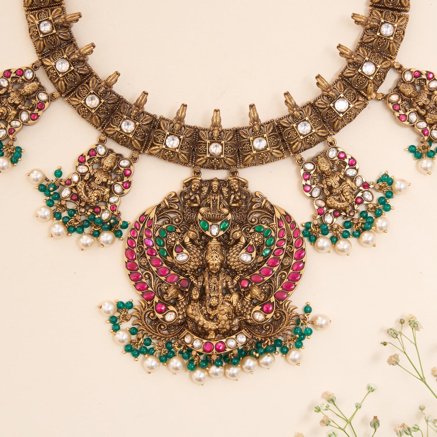 Gold Plated Shakunthalam 3D Kundan Nagas Necklace