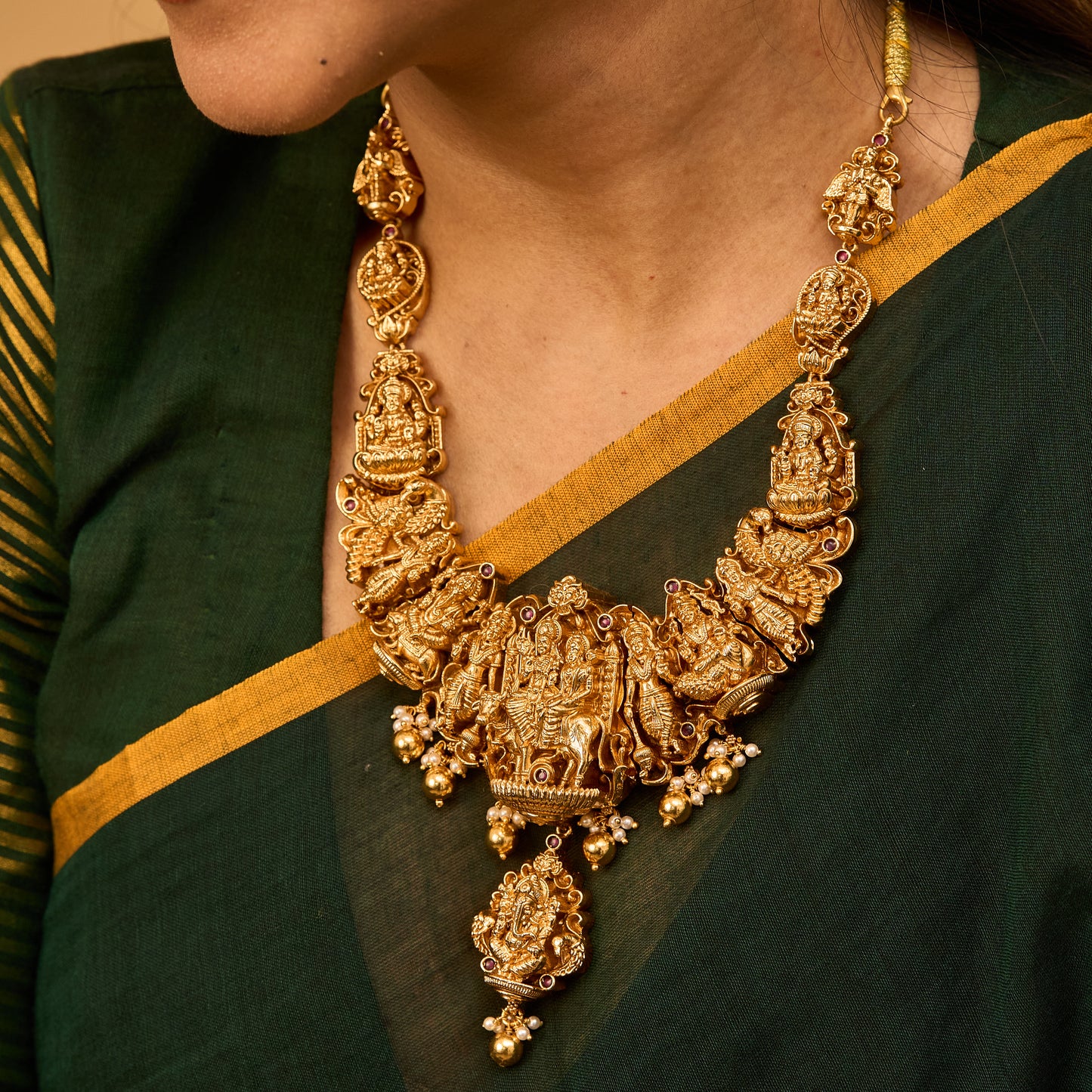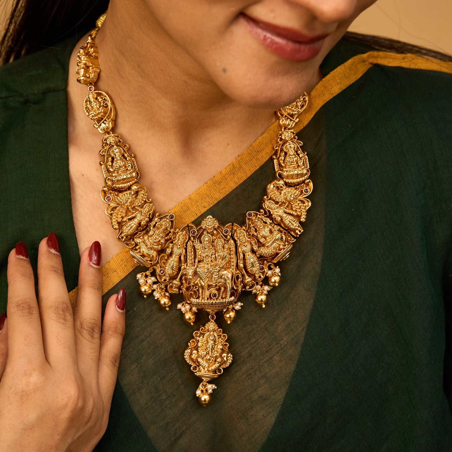 Shivan Parvathi Gold Plated 3D Nagas Necklace