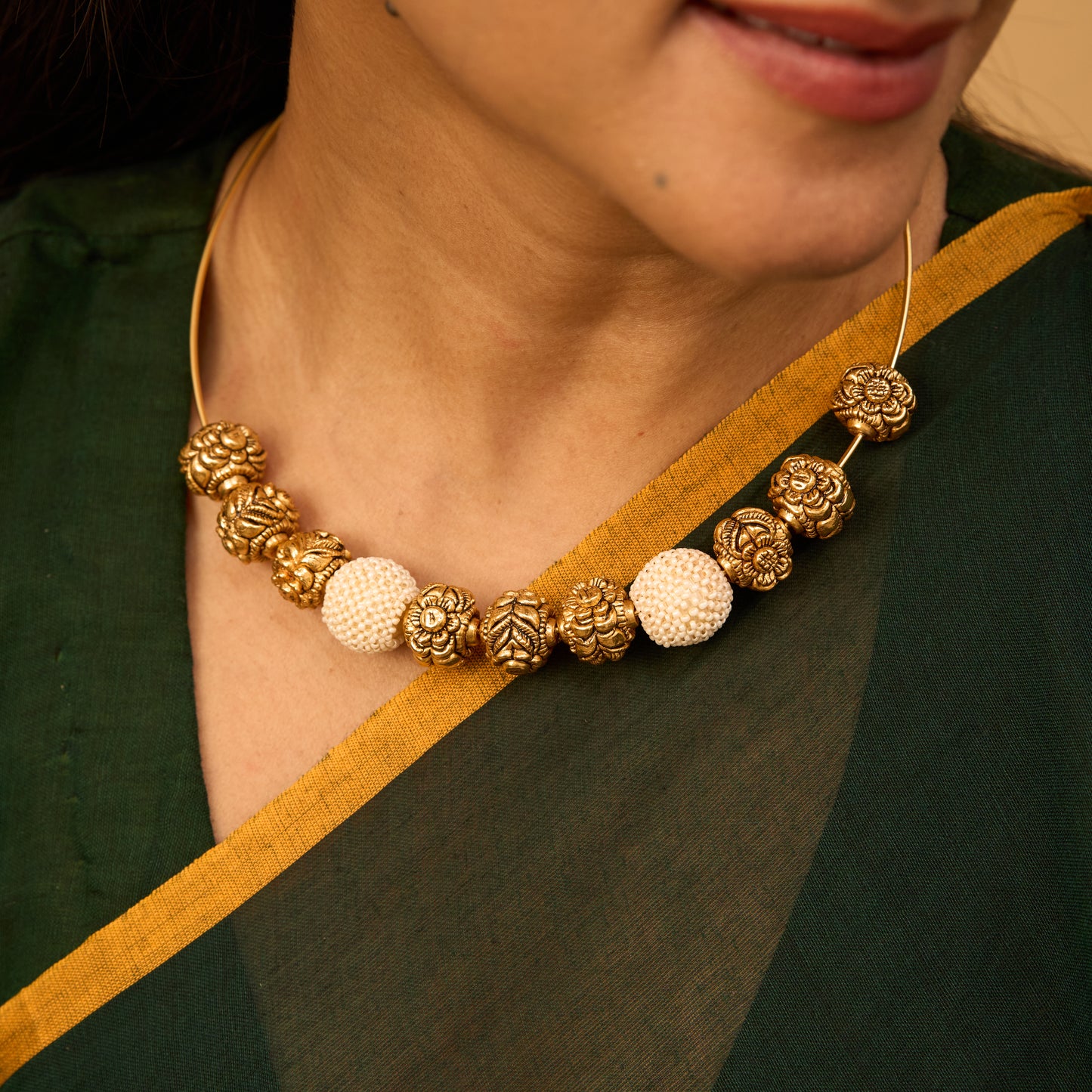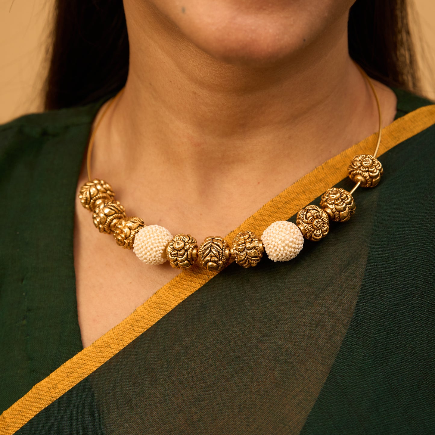 Pair this hasli necklace with our Gold Plated Bangle for a refined and traditional bridal or festive ensemble.