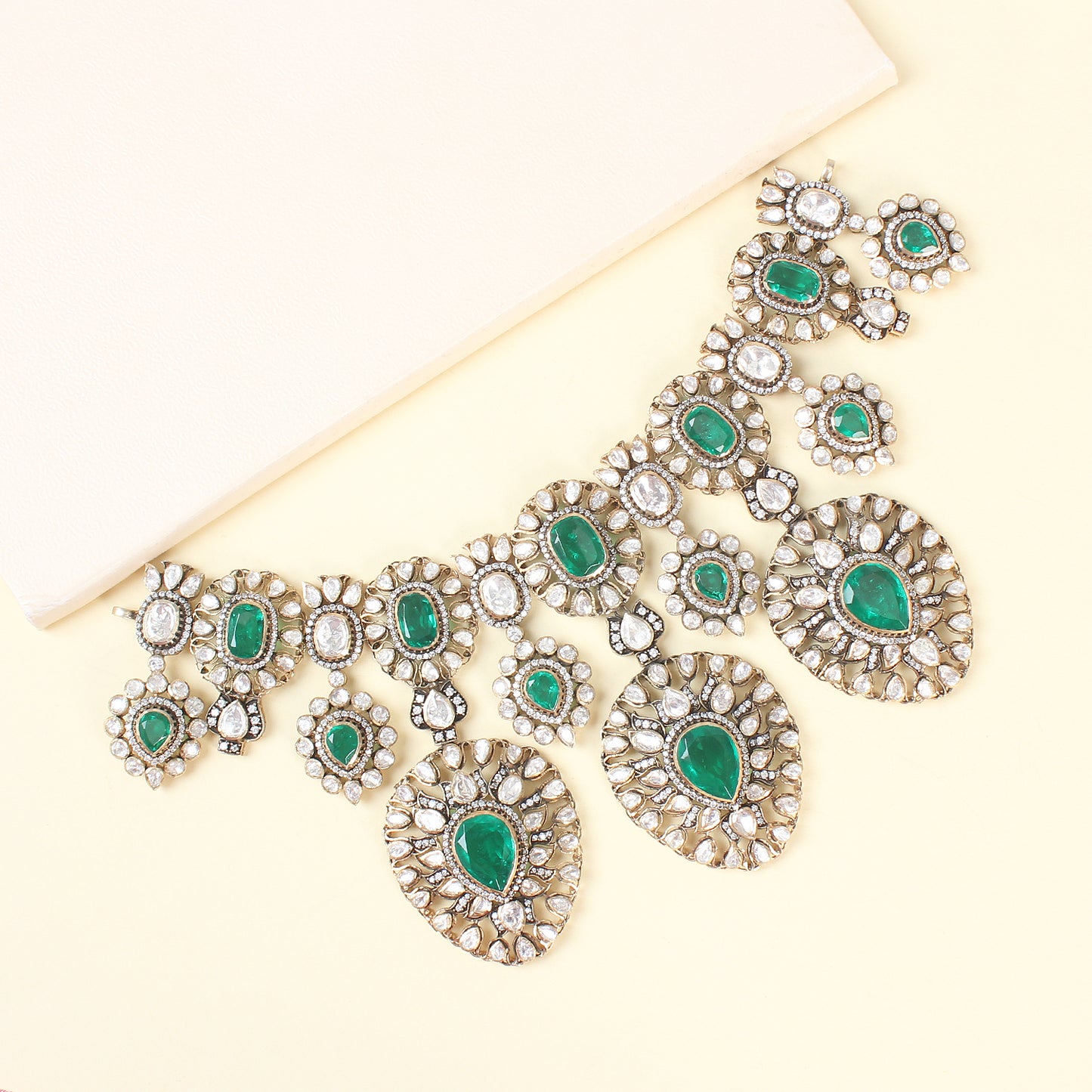 Gold Plated Victorian Green Emerald Necklace