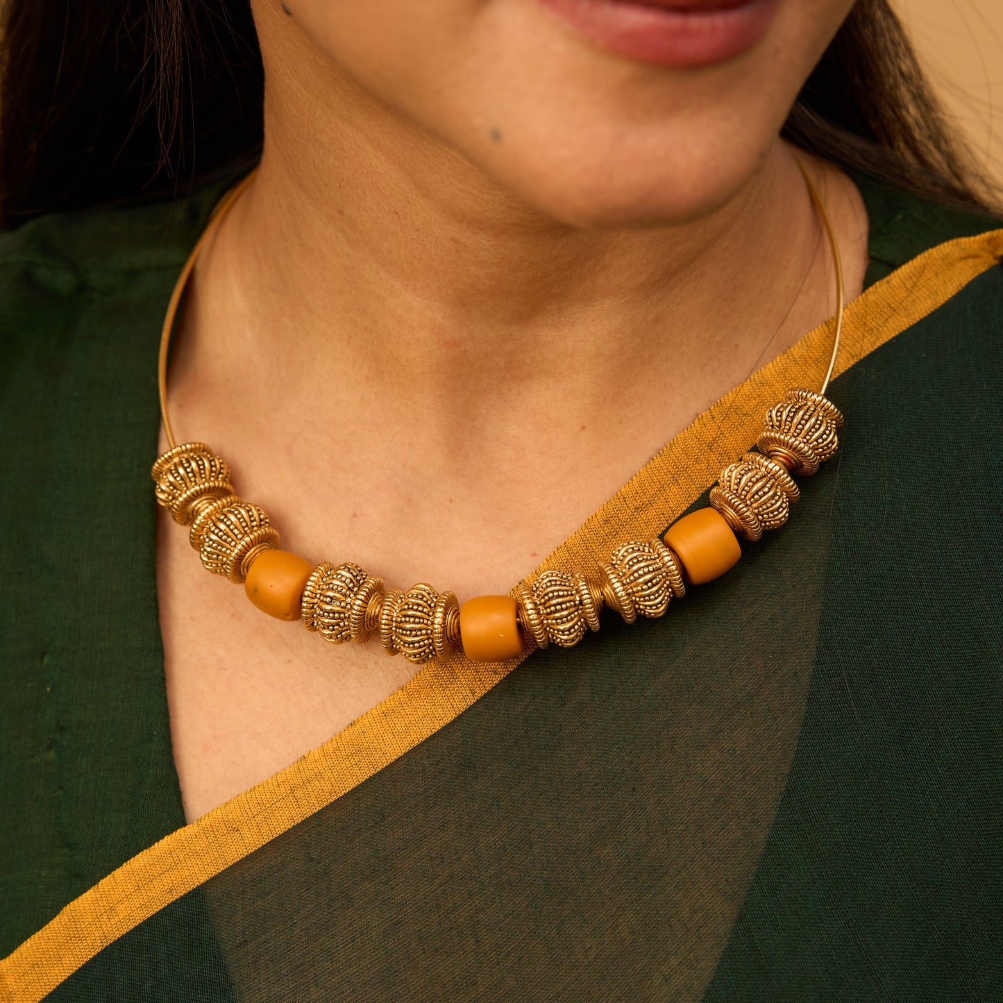 Gold Plated Beaded Nagas Coral Hasli Necklace