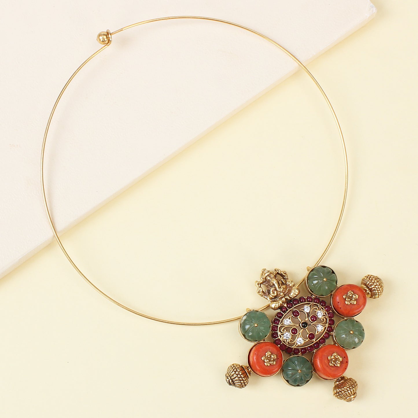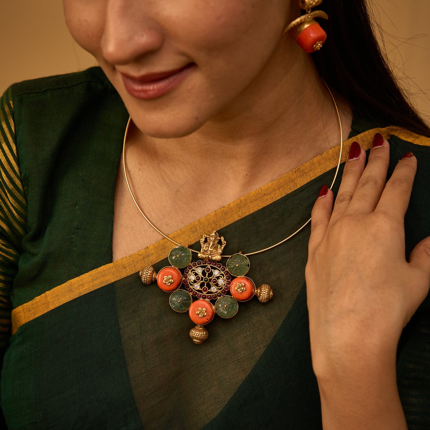Vinayagar Gold Plated Coral Hasli Nagas Necklace