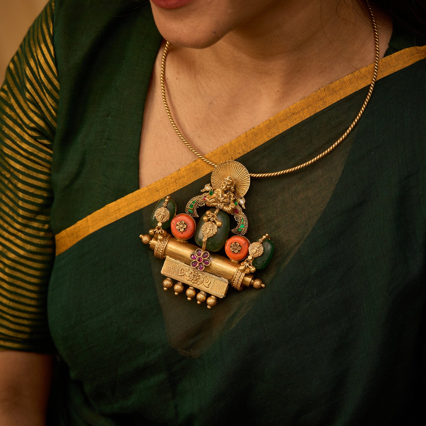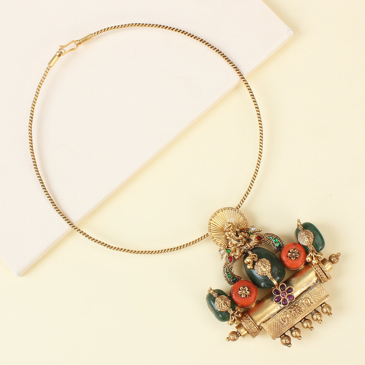 Gold Plated Adorn Vinayagar Nagas Coral Hasli Necklace