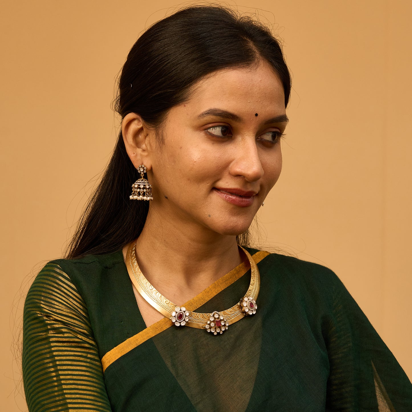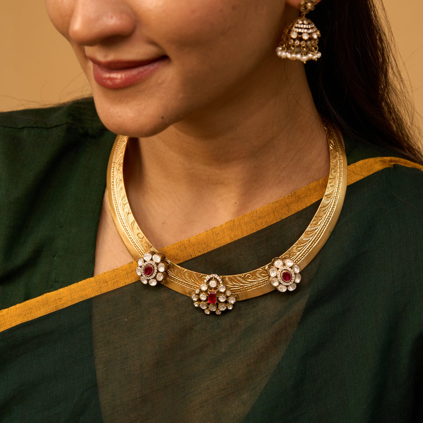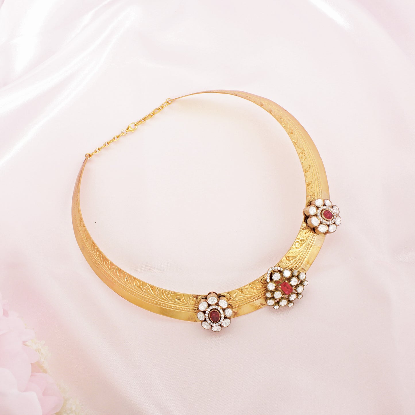 Elegant White & Red Gold Plated Victorian Moissanite Necklace