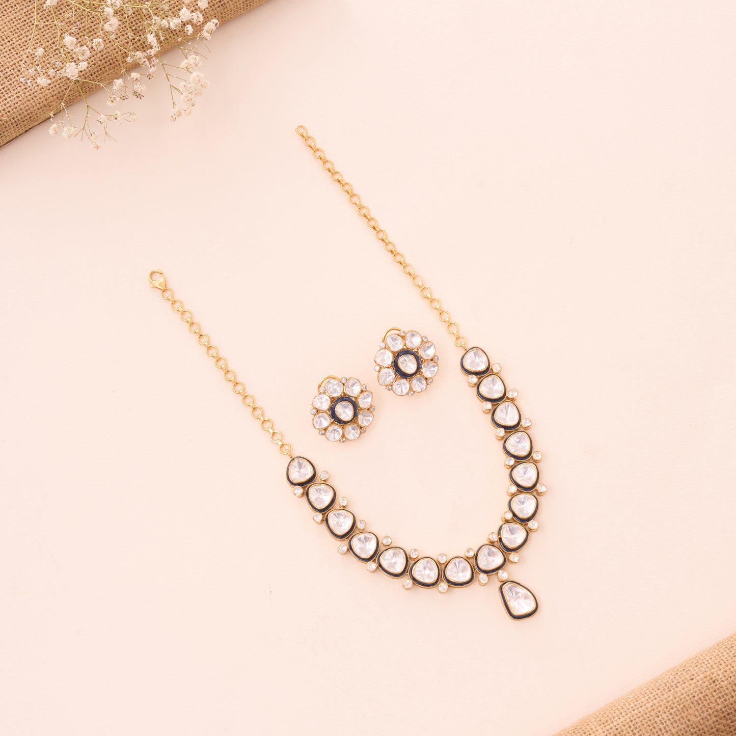 Minimalist Blue Moissanite Gold Plated Necklace With Earrings