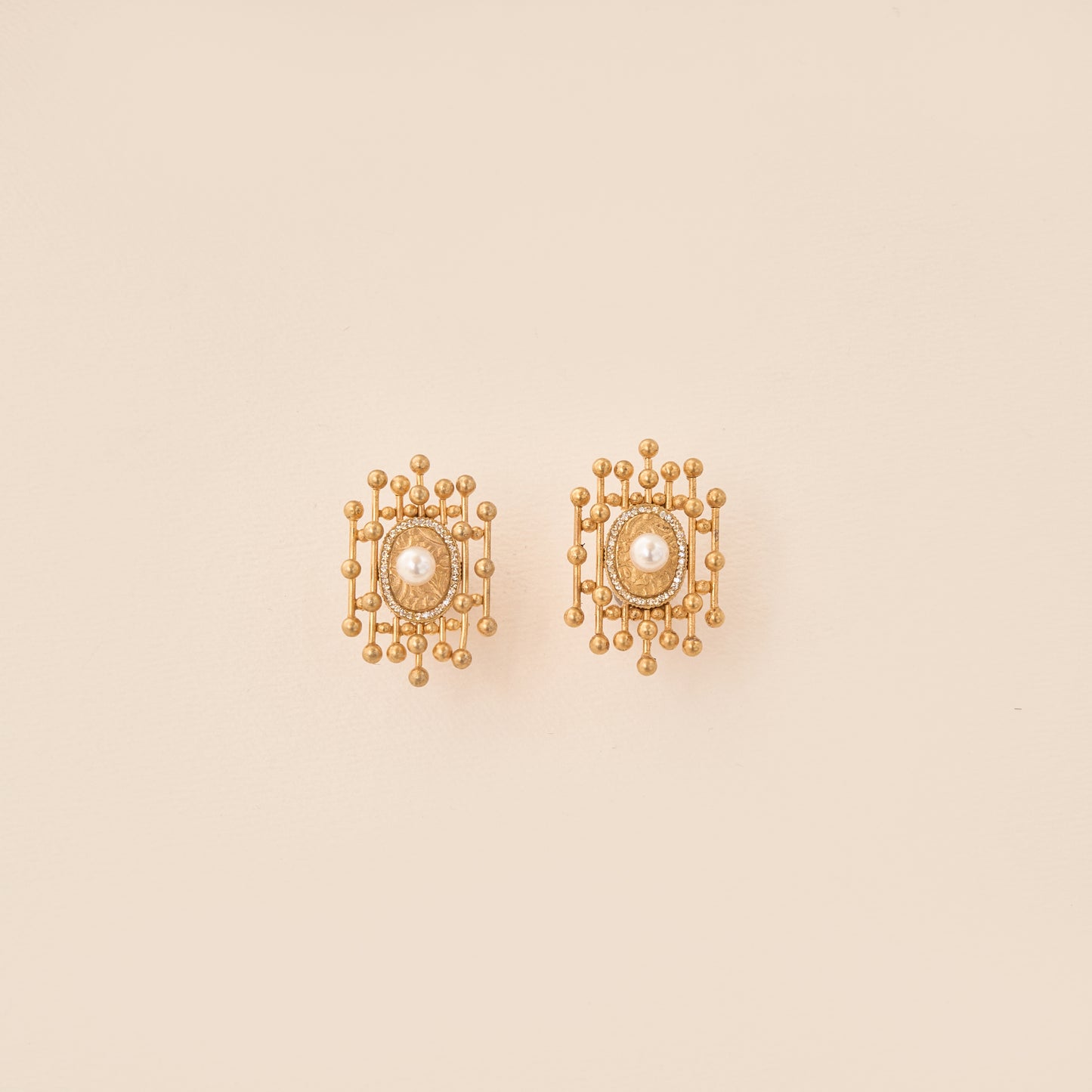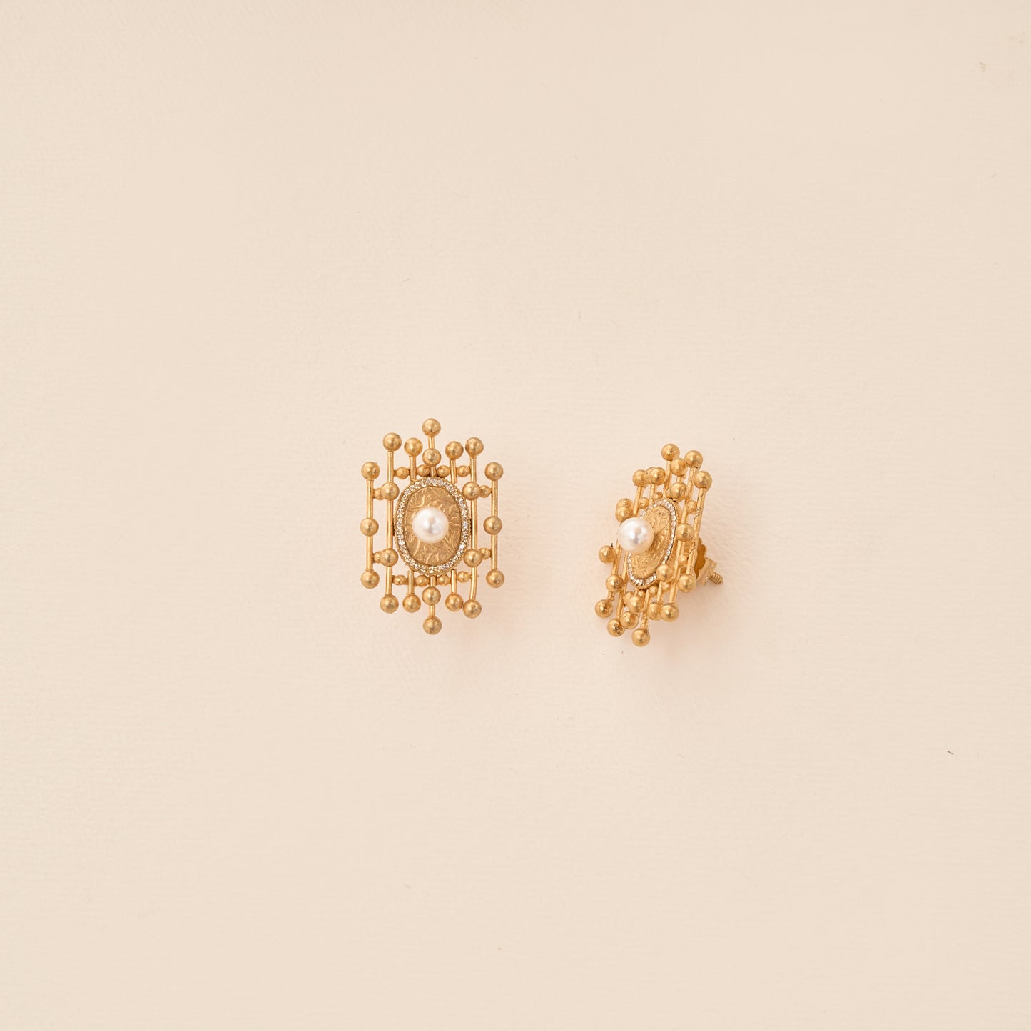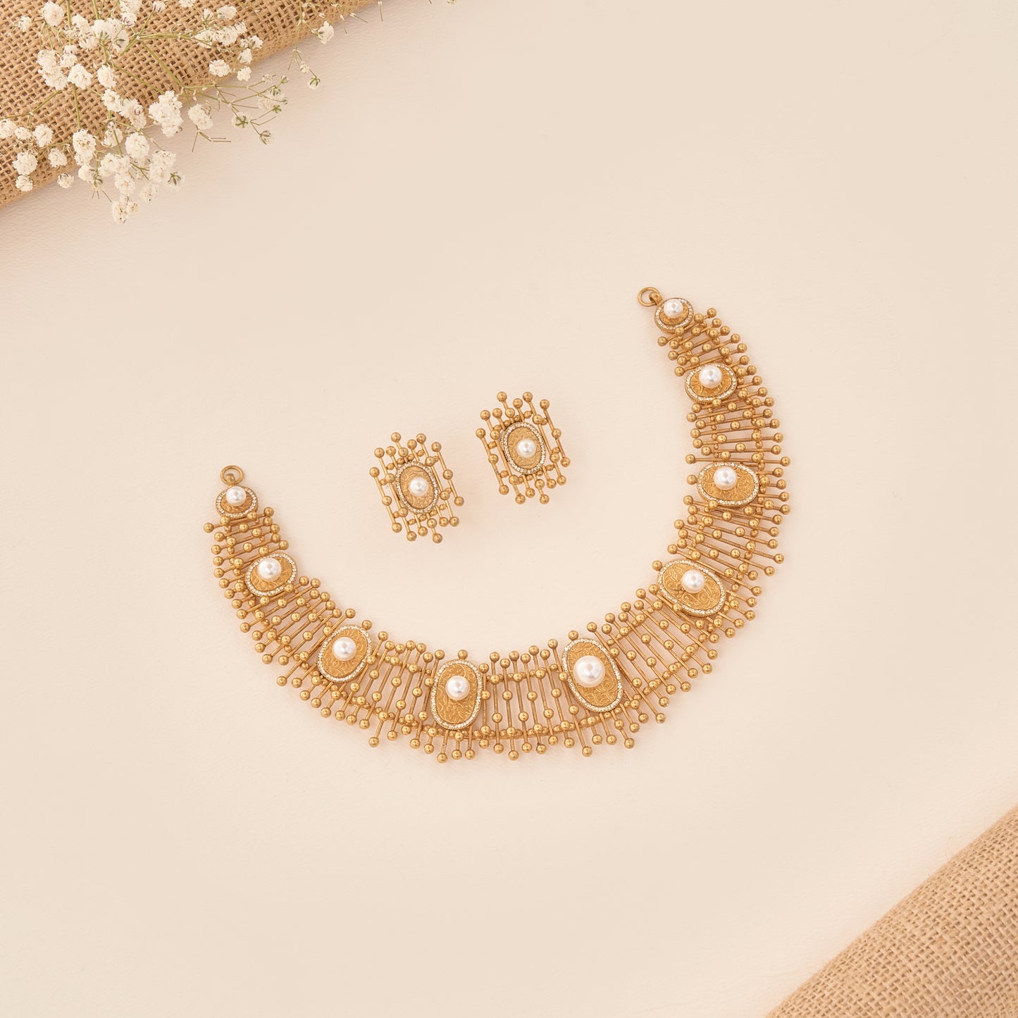 Gold Plated Elegant Pearl Heritage Necklace With Earring