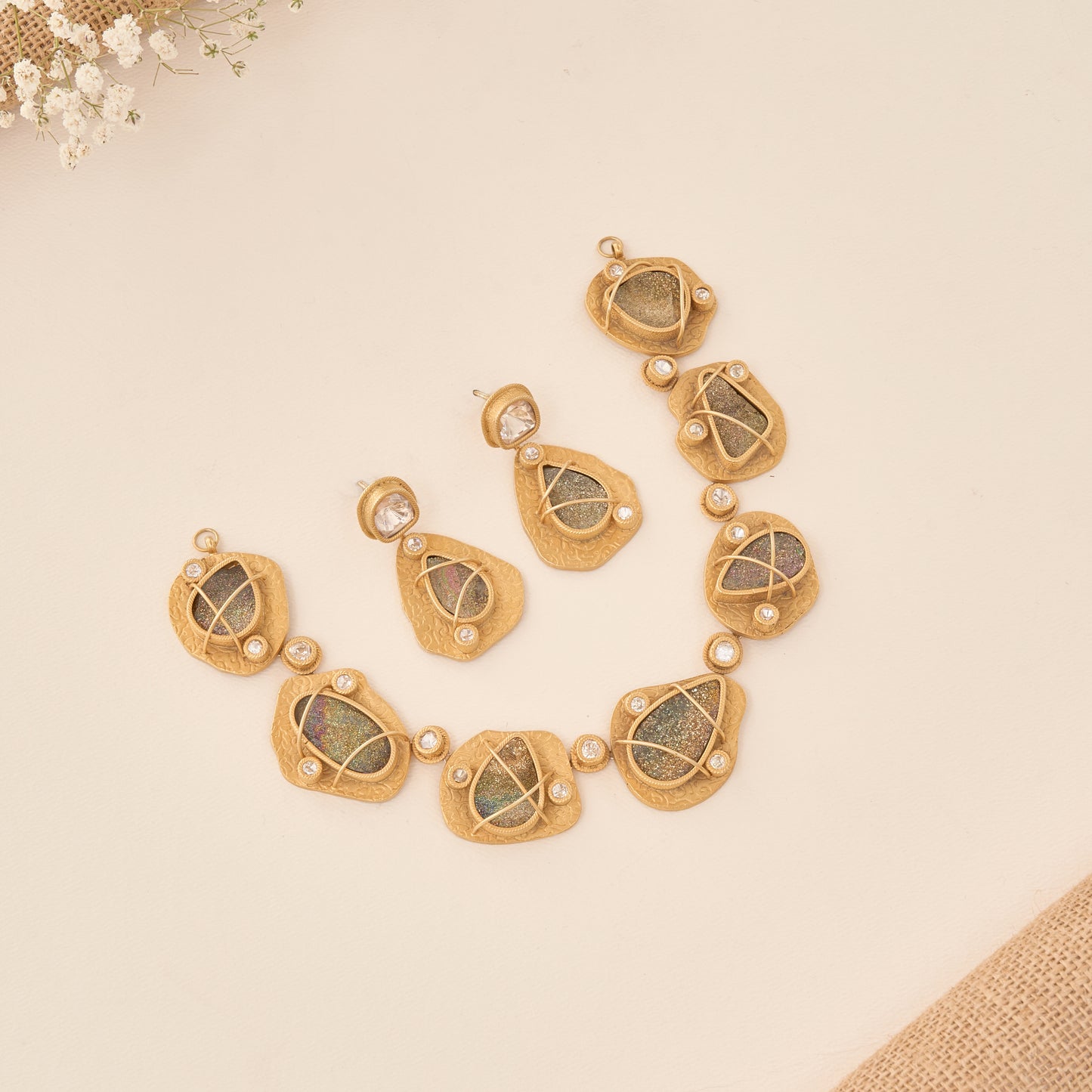 Gold Plated Studded Heritage Necklace With Earrings