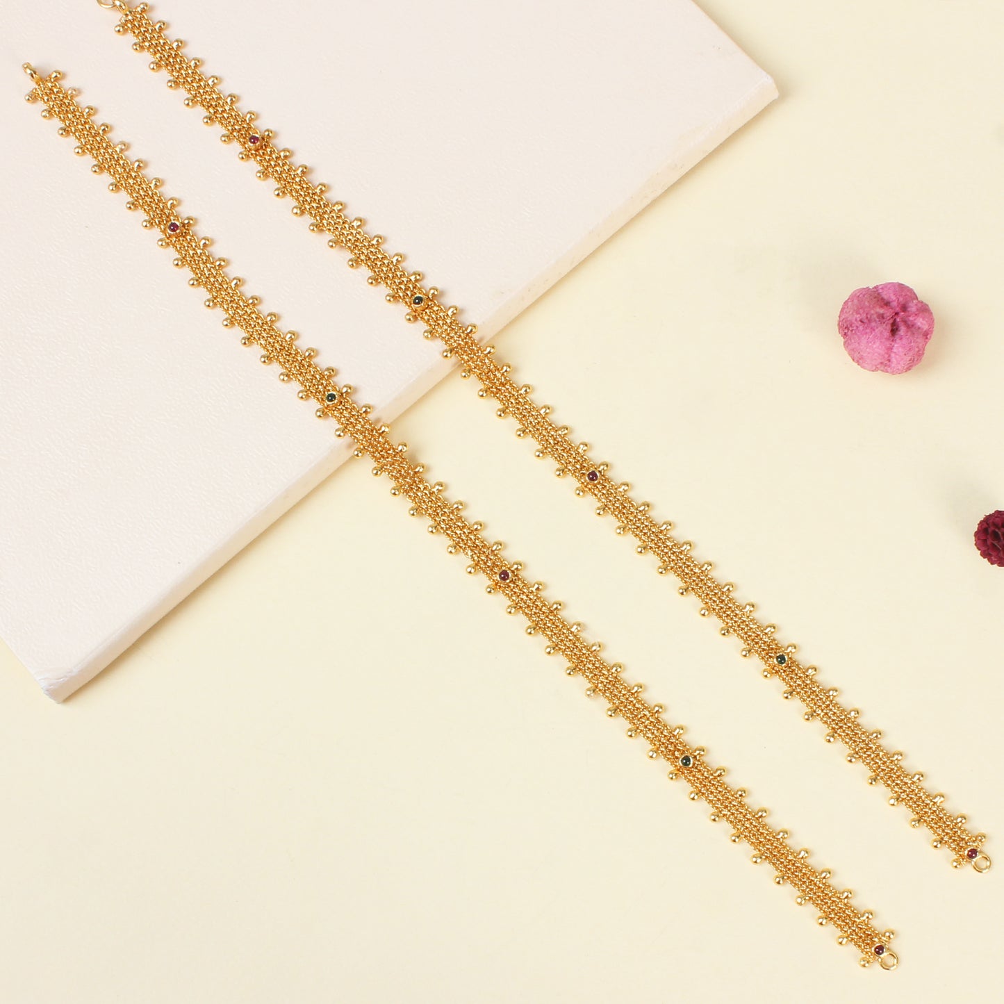 Gold Plated Red & Green Lakshmi 2 in 1 Necklace And Haram