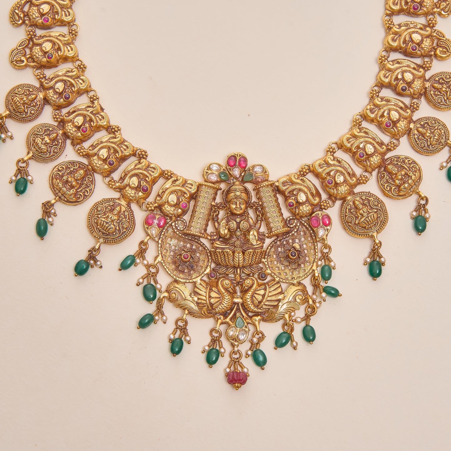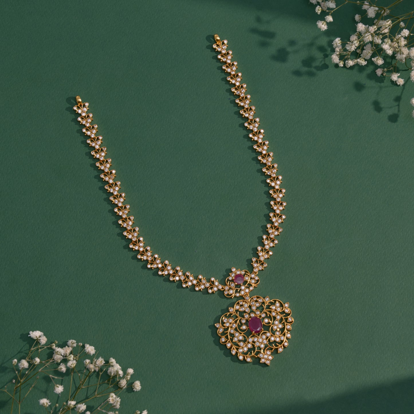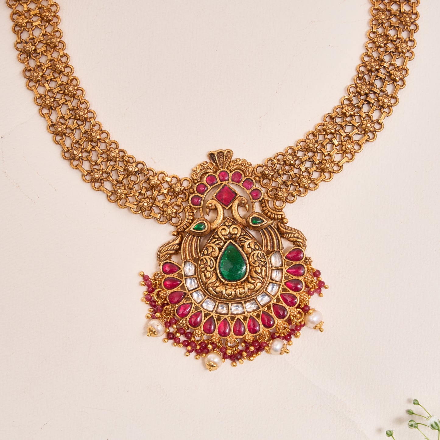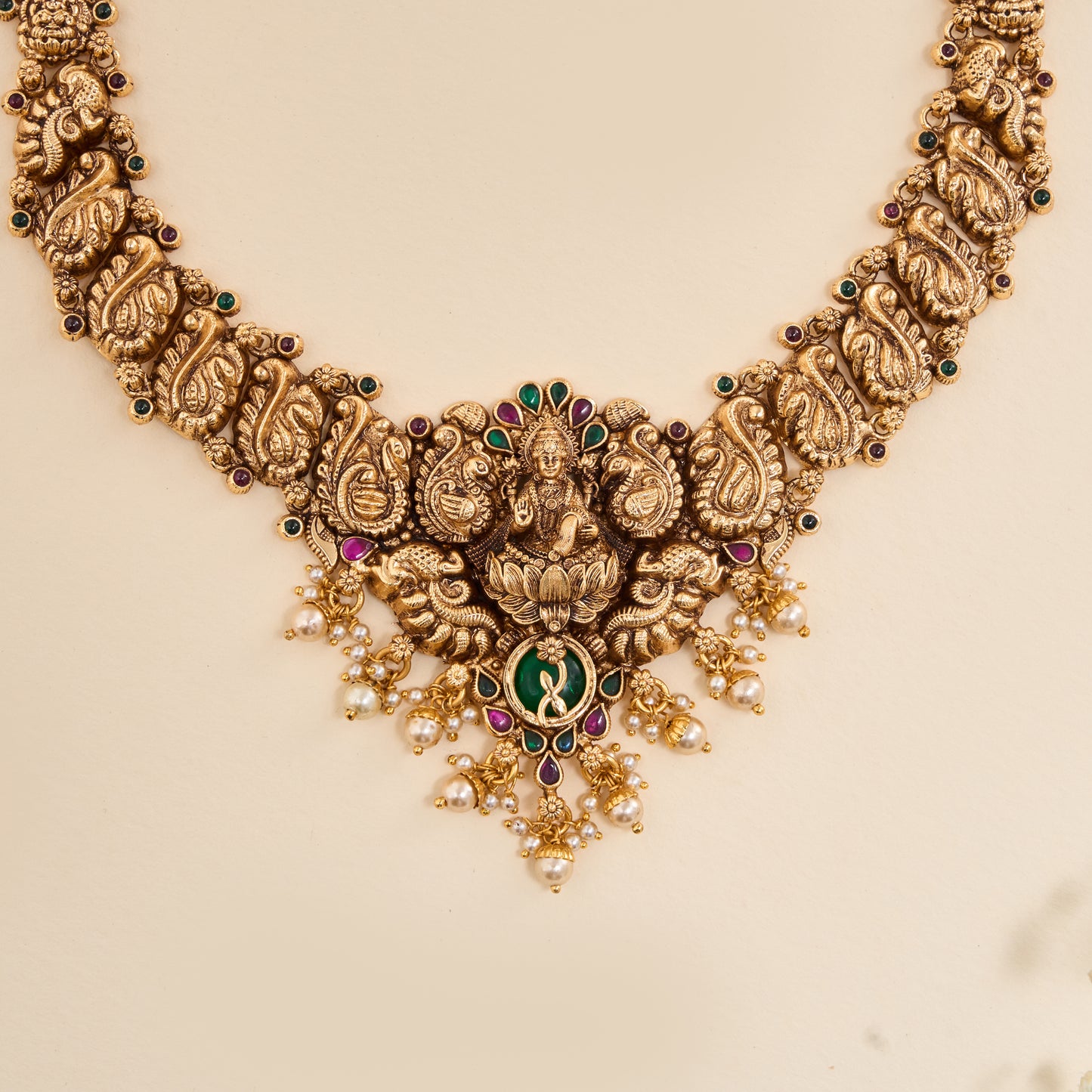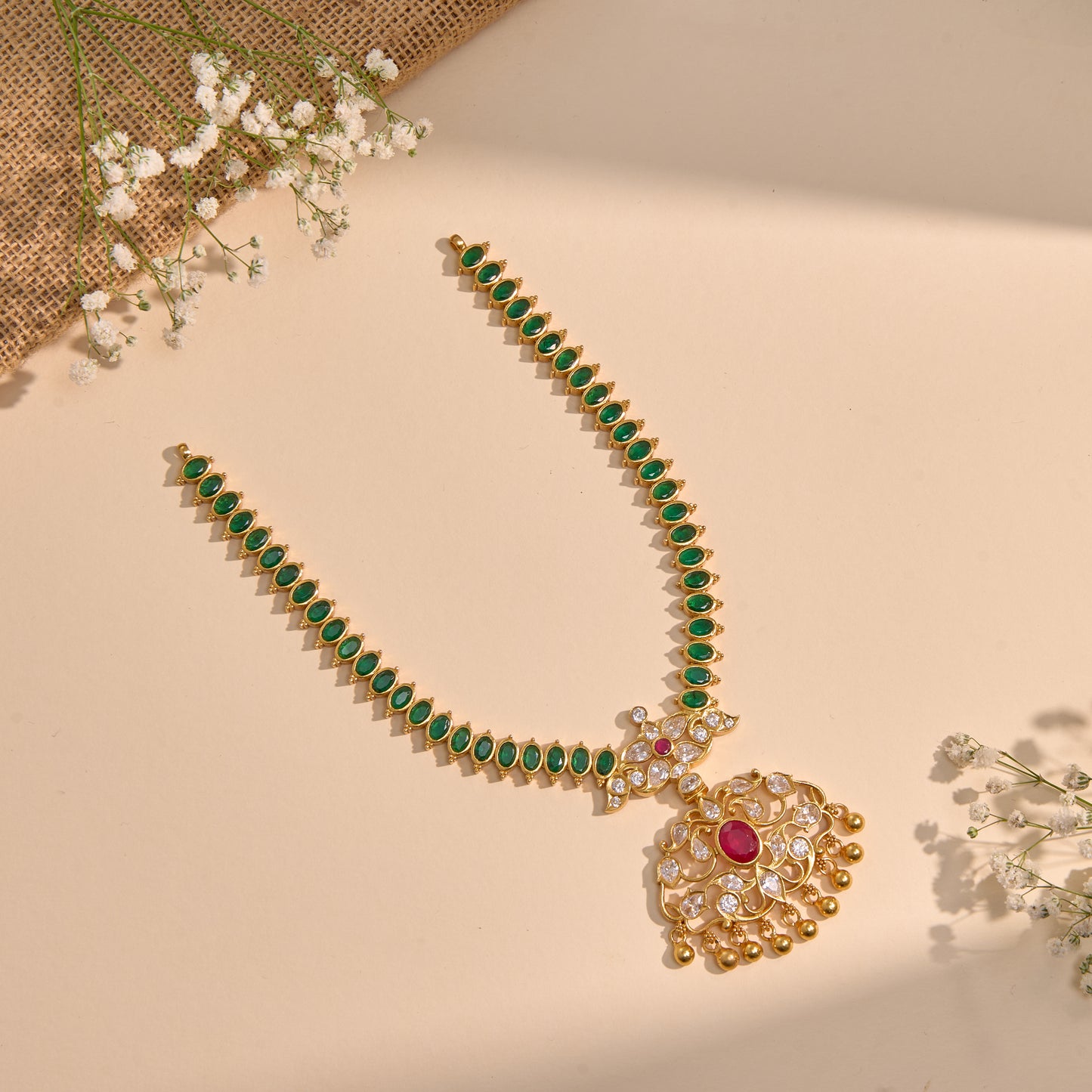 Crafted in 92.5 Pure Silver with Rich Gold Plating, our necklace collection blends elegance and tradition for every celebration. Whether you're choosing for a wedding, festive look, or gifting a loved one, these designs elevate every moment. Explore timeless Gold Plated Silver Necklace Sets, Temple Style Chokers, and Handcrafted Oxidized Harams that tell your story with every detail. Pair your pick with our bestselling Jhumkas or complete your bridal set with a Silver Maang Tikka.