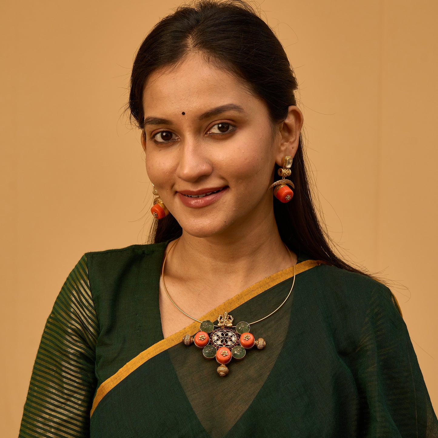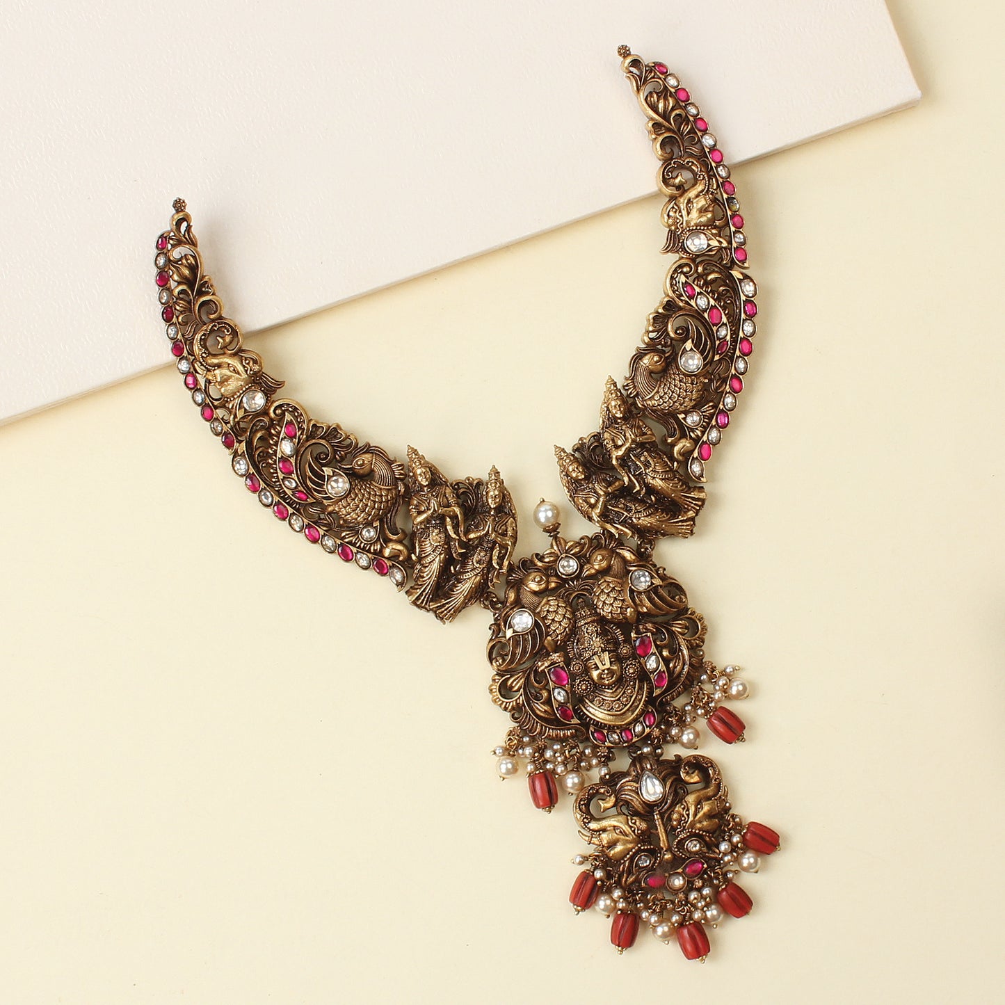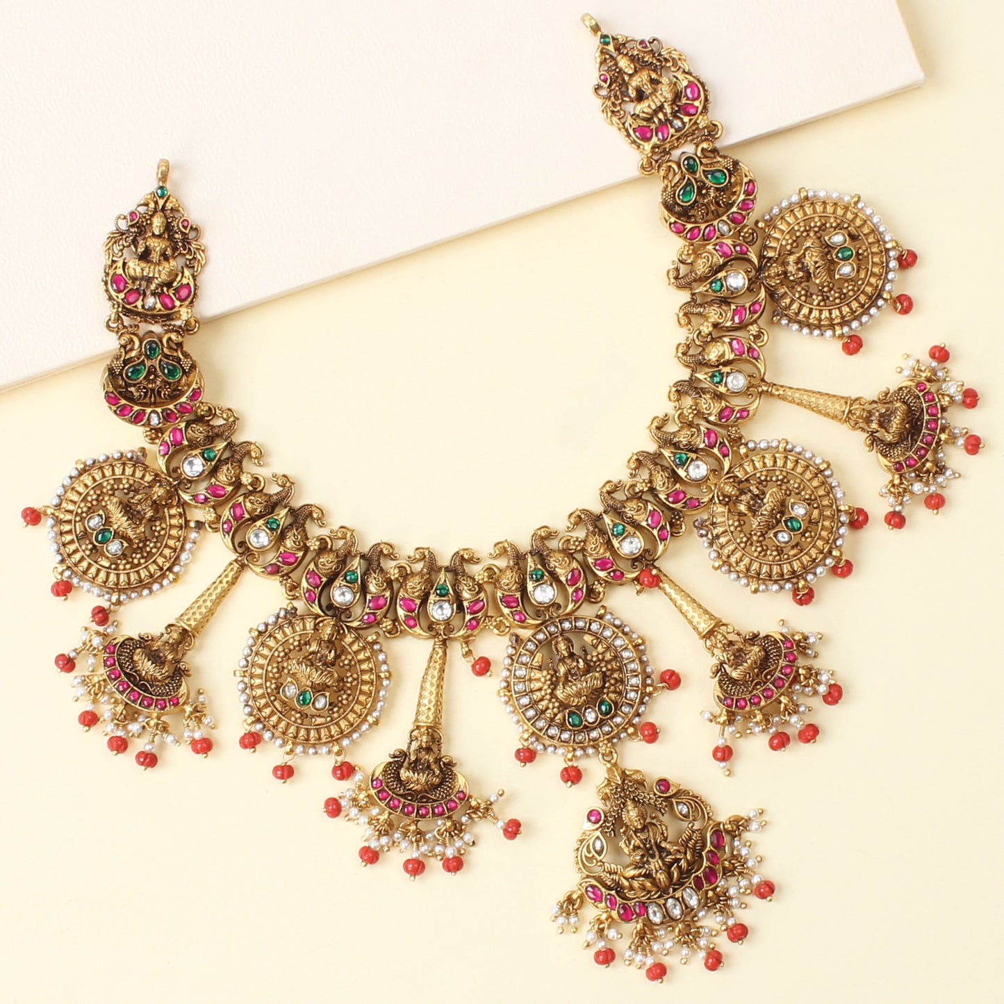 Crafted in 92.5 Pure Silver with Rich Gold Plating, our necklace collection blends elegance and tradition for every celebration. Whether you're choosing for a wedding, festive look, or gifting a loved one, these designs elevate every moment. Explore timeless Gold Plated Silver Necklace Sets, Temple Style Chokers, and Handcrafted Oxidized Harams that tell your story with every detail. Pair your pick with our bestselling Jhumkas or complete your bridal set with a Silver Maang Tikka.