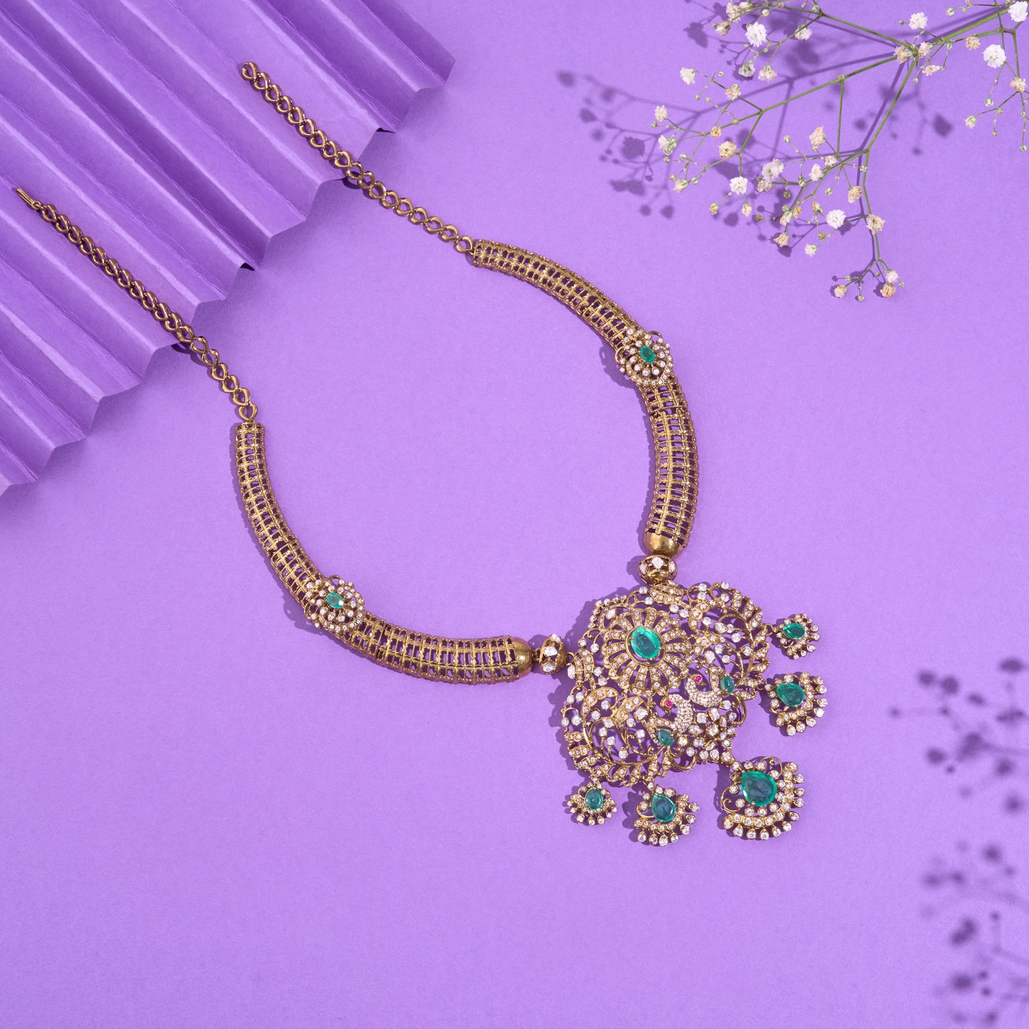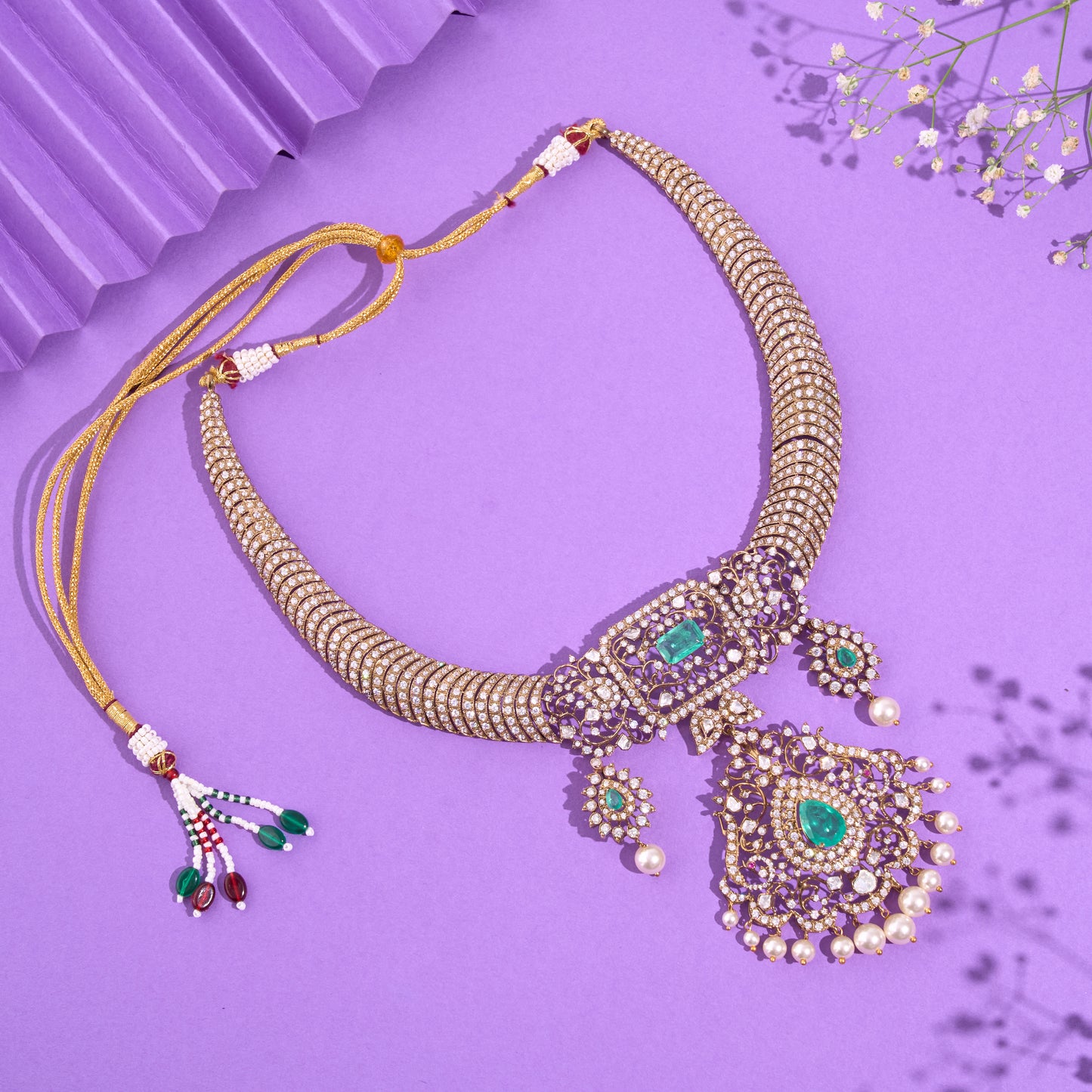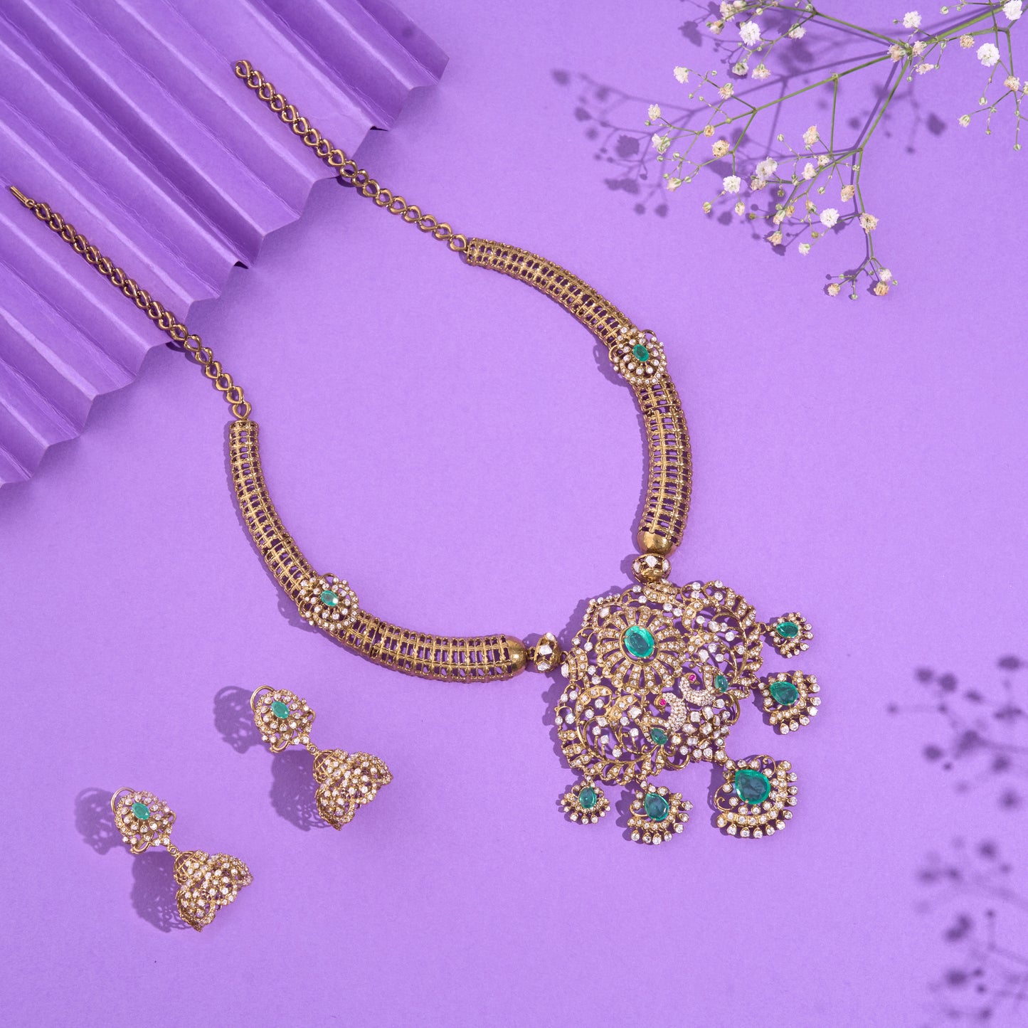 Crafted in 92.5 Pure Silver with Rich Gold Plating, our necklace collection blends elegance and tradition for every celebration. Whether you're choosing for a wedding, festive look, or gifting a loved one, these designs elevate every moment. Explore timeless Gold Plated Silver Necklace Sets, Temple Style Chokers, and Handcrafted Oxidized Harams that tell your story with every detail. Pair your pick with our bestselling Jhumkas or complete your bridal set with a Silver Maang Tikka.