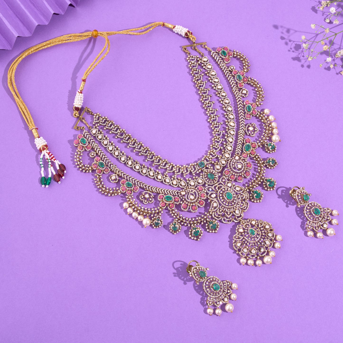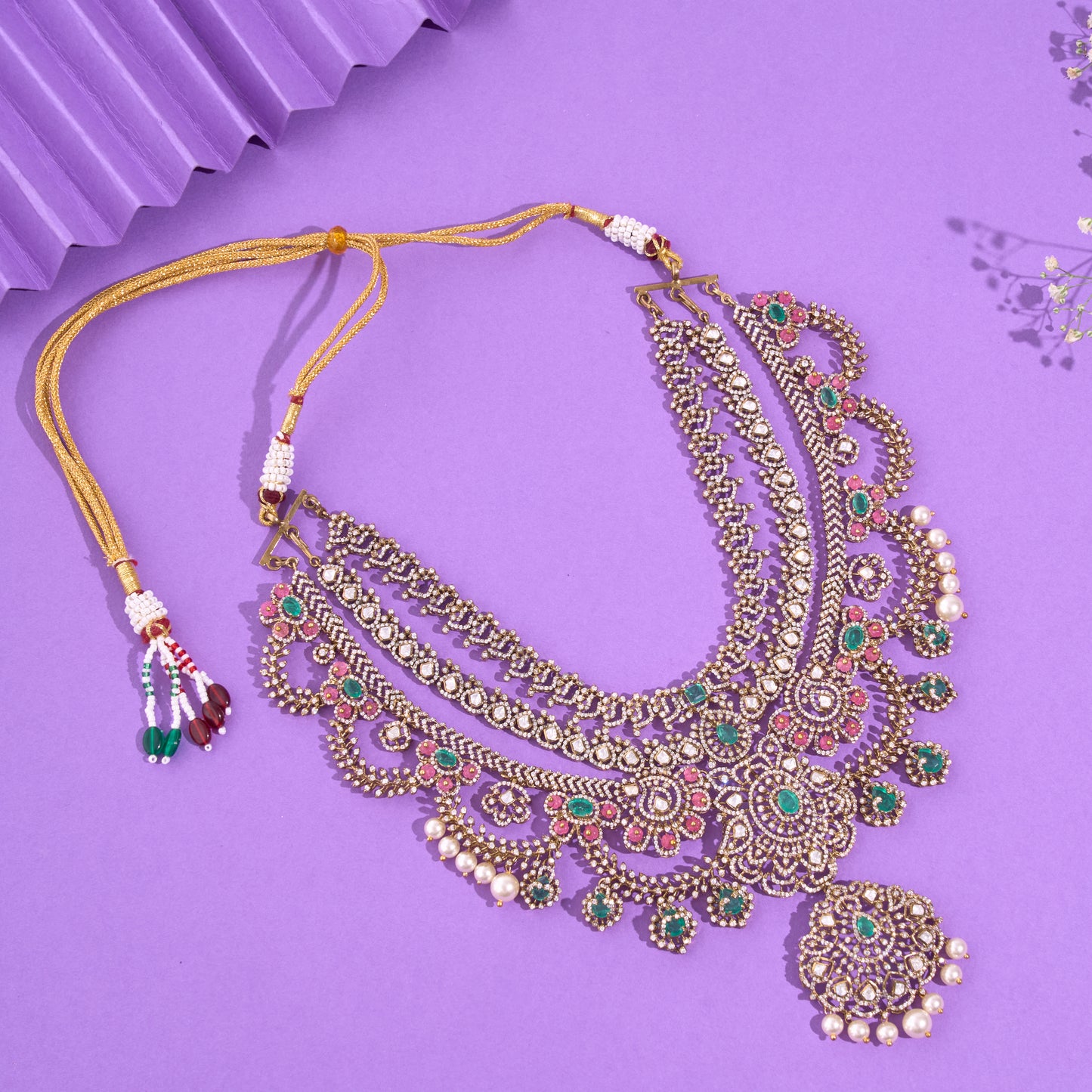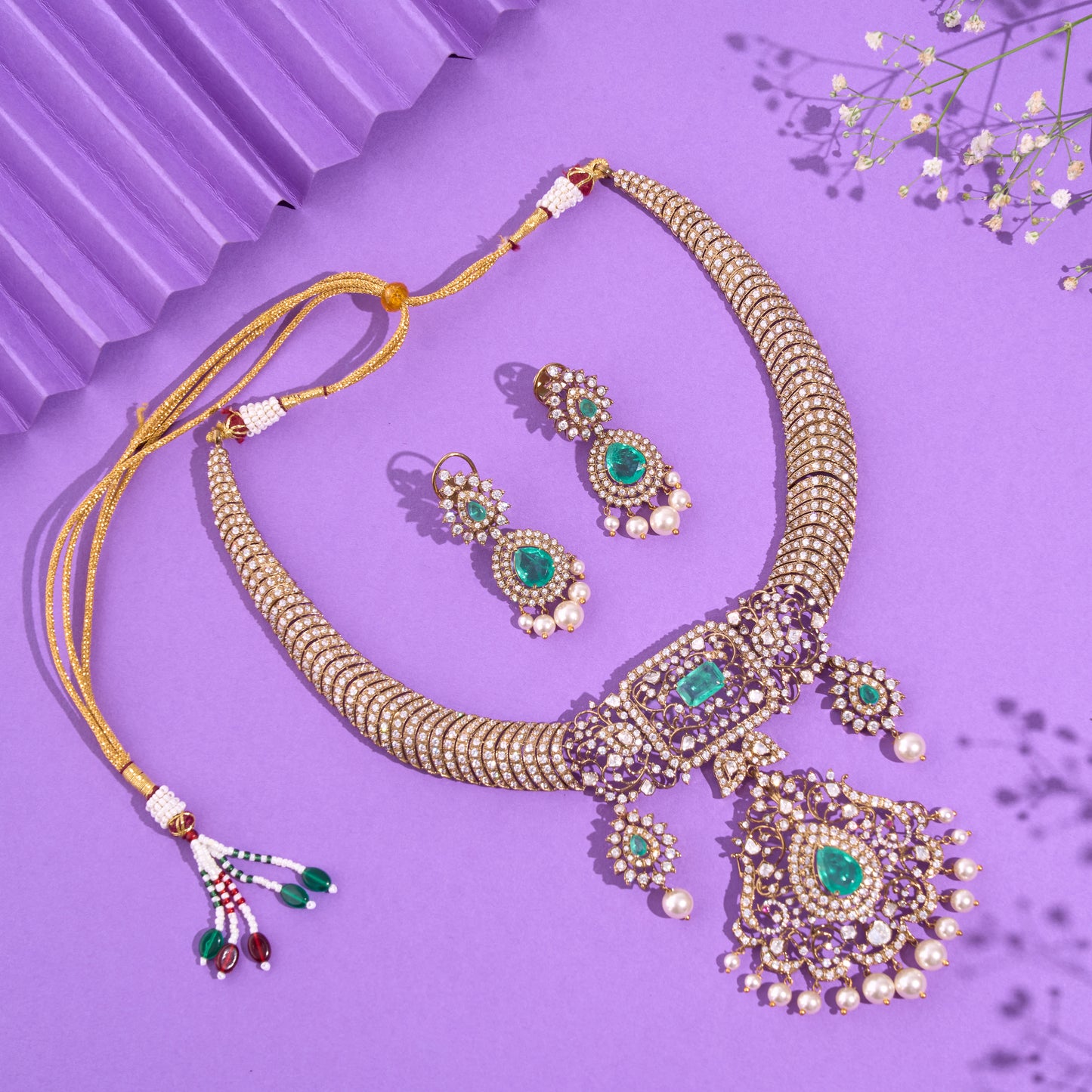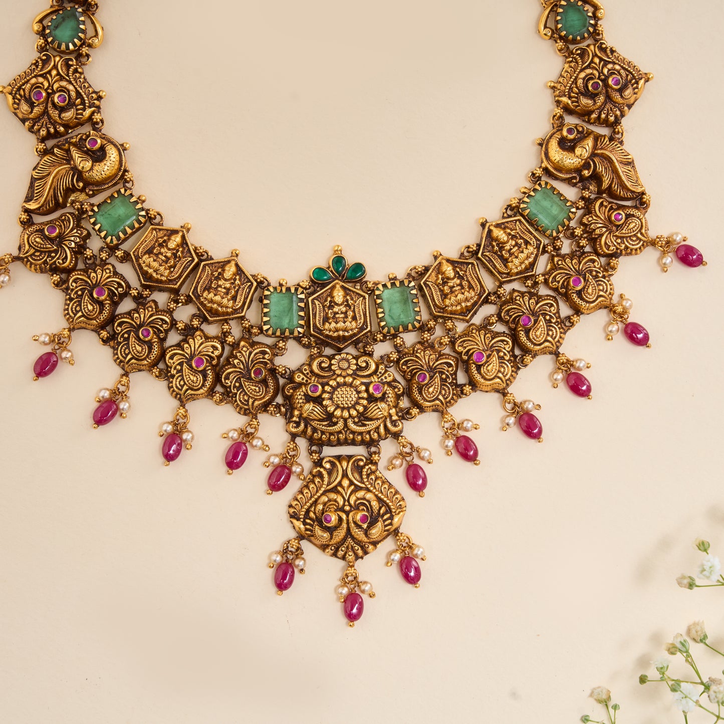 Crafted in 92.5 Pure Silver with Rich Gold Plating, our necklace collection blends elegance and tradition for every celebration. Whether you're choosing for a wedding, festive look, or gifting a loved one, these designs elevate every moment. Explore timeless Gold Plated Silver Necklace Sets, Temple Style Chokers, and Handcrafted Oxidized Harams that tell your story with every detail. Pair your pick with our bestselling Jhumkas or complete your bridal set with a Silver Maang Tikka.
