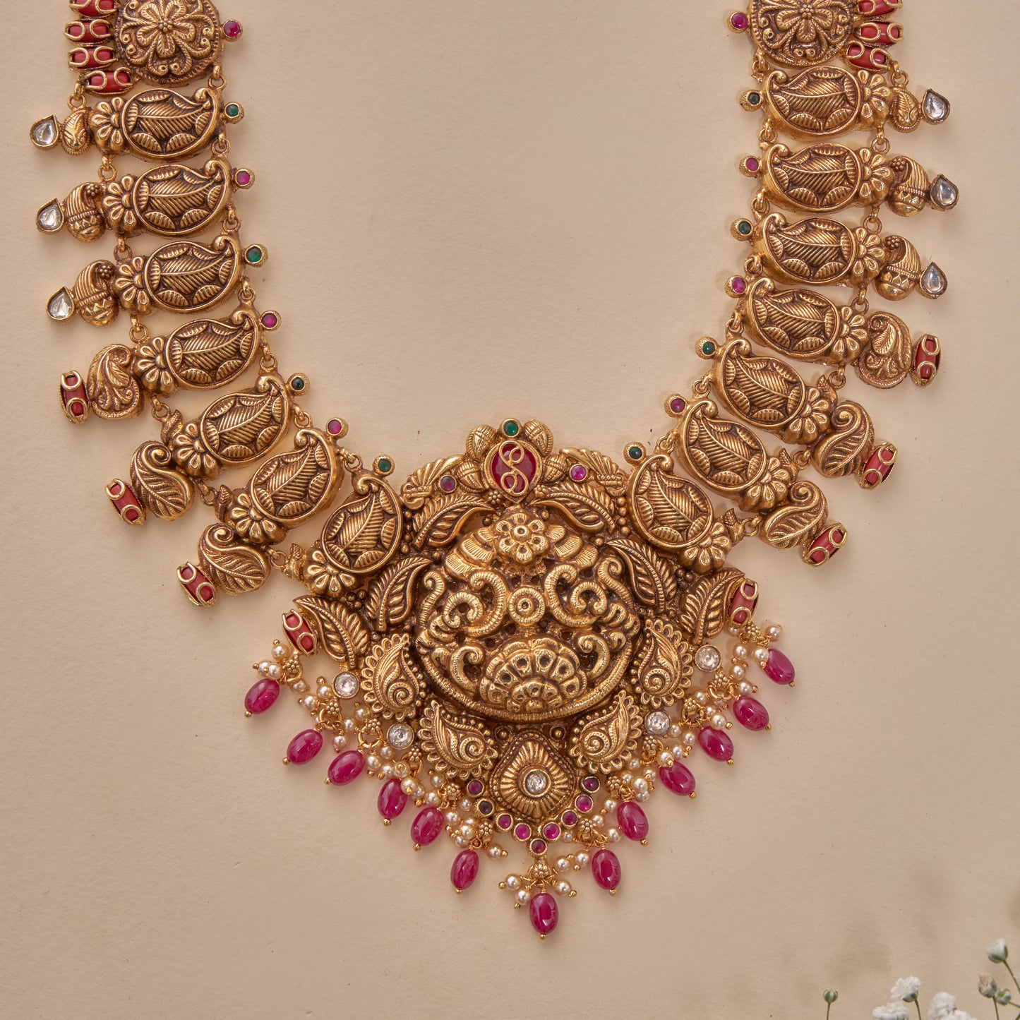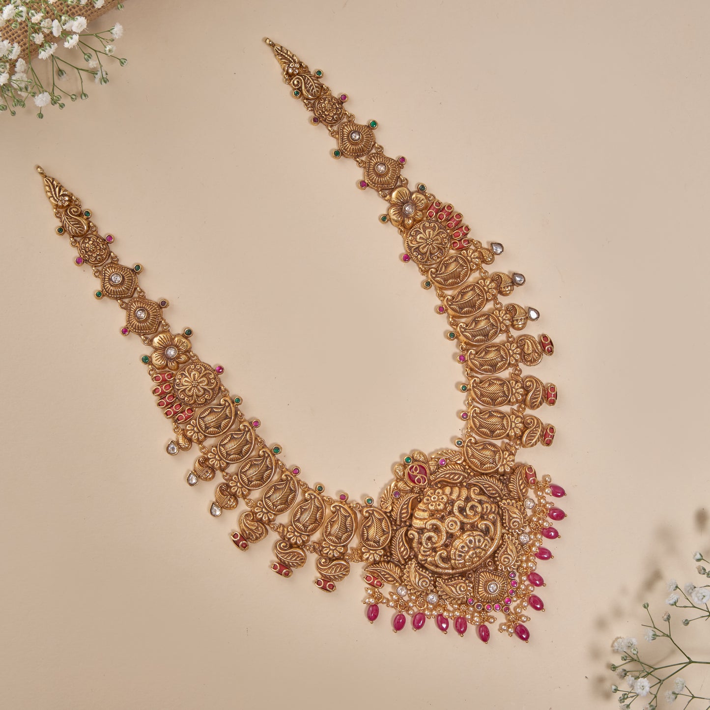 Adorn your story with gold plated silver harams that whisper tradition. Our handcrafted harams are more than just jewelry they carry blessings, heritage, and timeless beauty in every link. Designed in pure silver and polished with gold, these long necklaces are perfect for your most cherished moments from bridal beginnings to festive celebrations. Made with love. Worn with pride. Style it with Jhumka Earrings and Gold Plated Bangles to complete your look of grace.