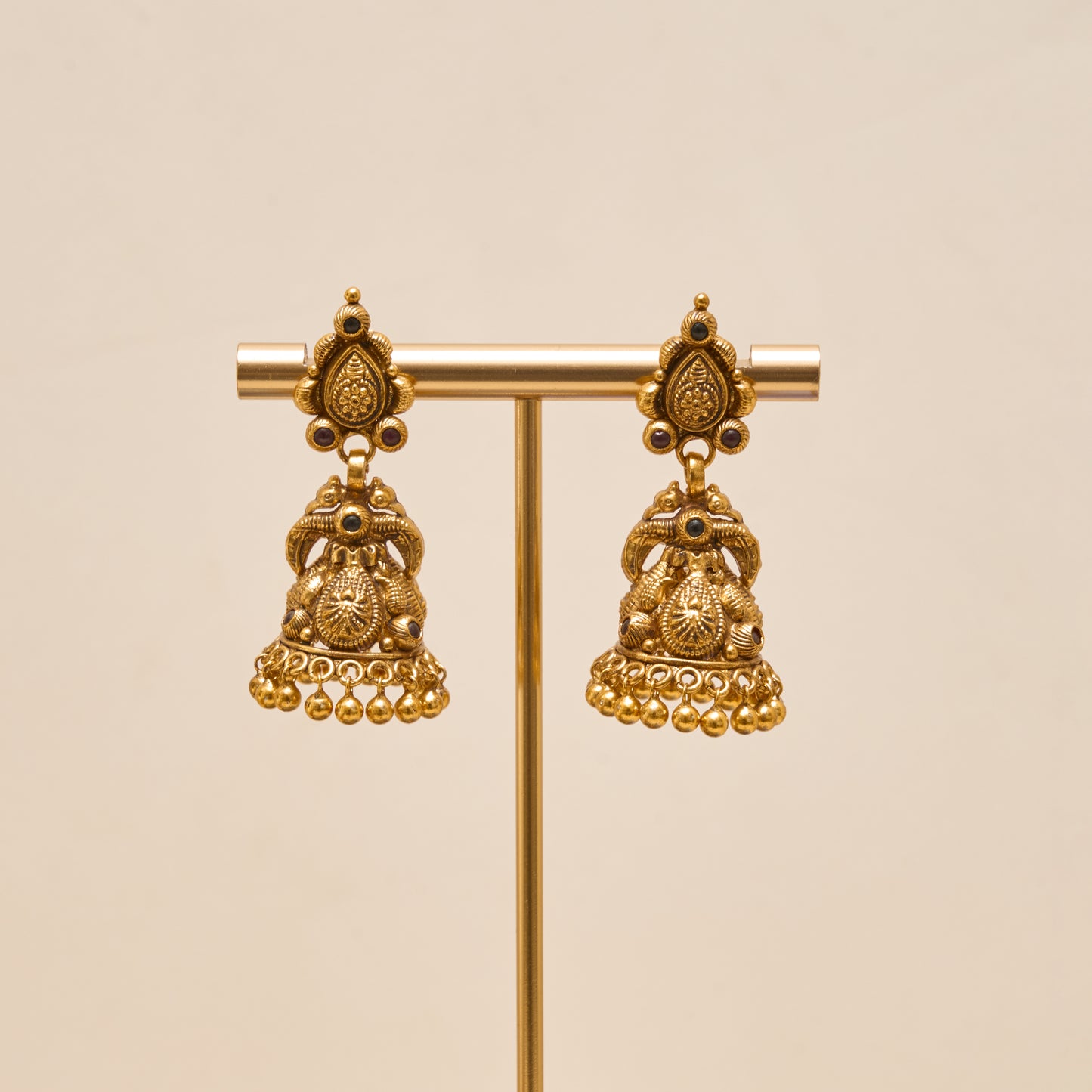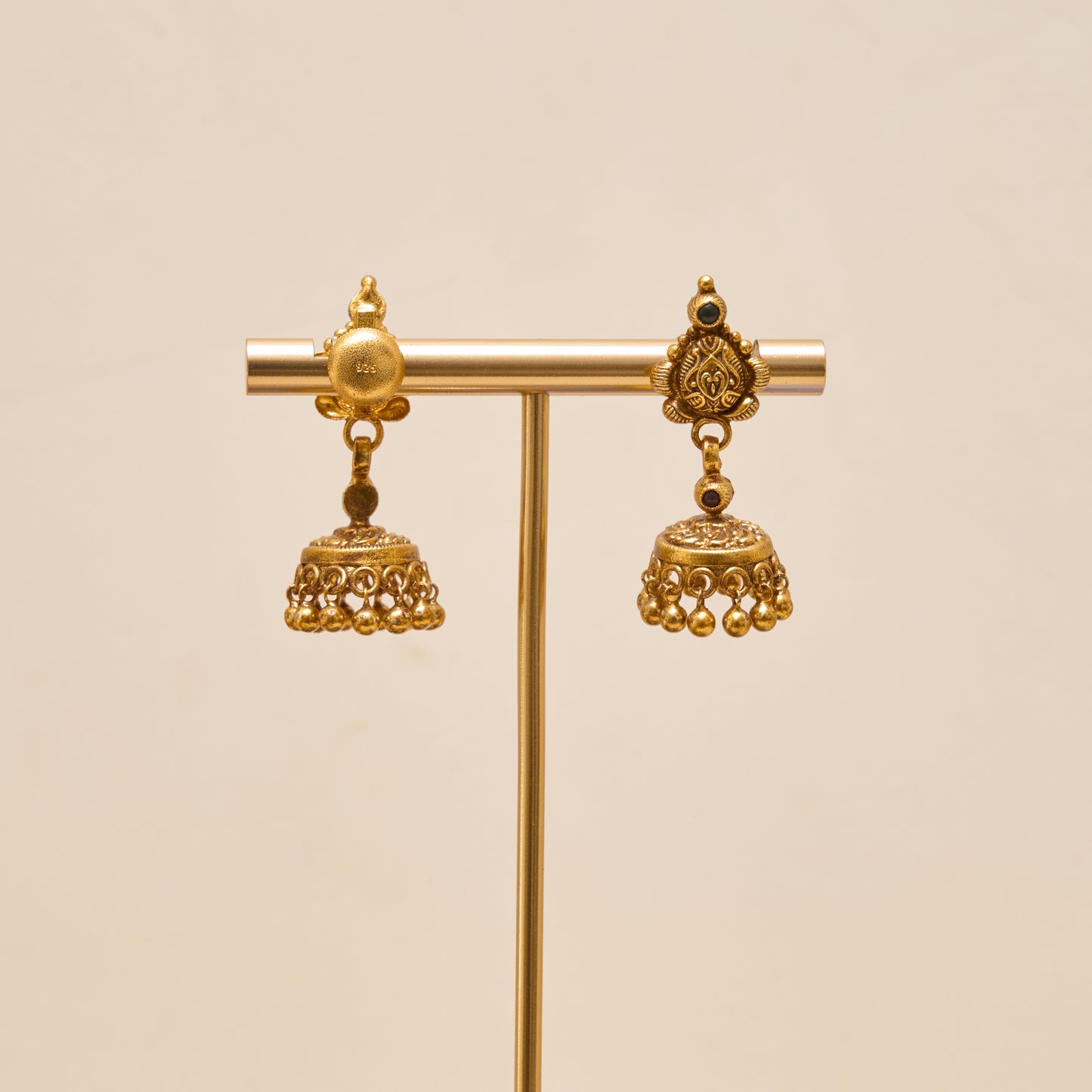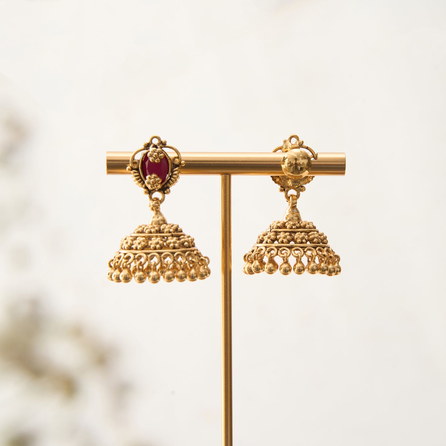 Explore gold plated and oxidized silver jhumka earrings crafted in premium 92.5 sterling silver, perfect for weddings, festive occasions and traditional wear. From classic temple designs to Victorian and Naga styles, these jhumkas bring timeless elegance to every look. Style these jhumka earrings with our Gold Plated Silver Choker Necklaces, Gold Plated Silver Harams, or Gold Plated Silver Necklaces for a complete traditional look.