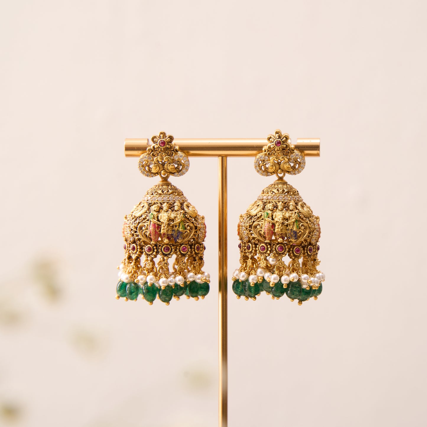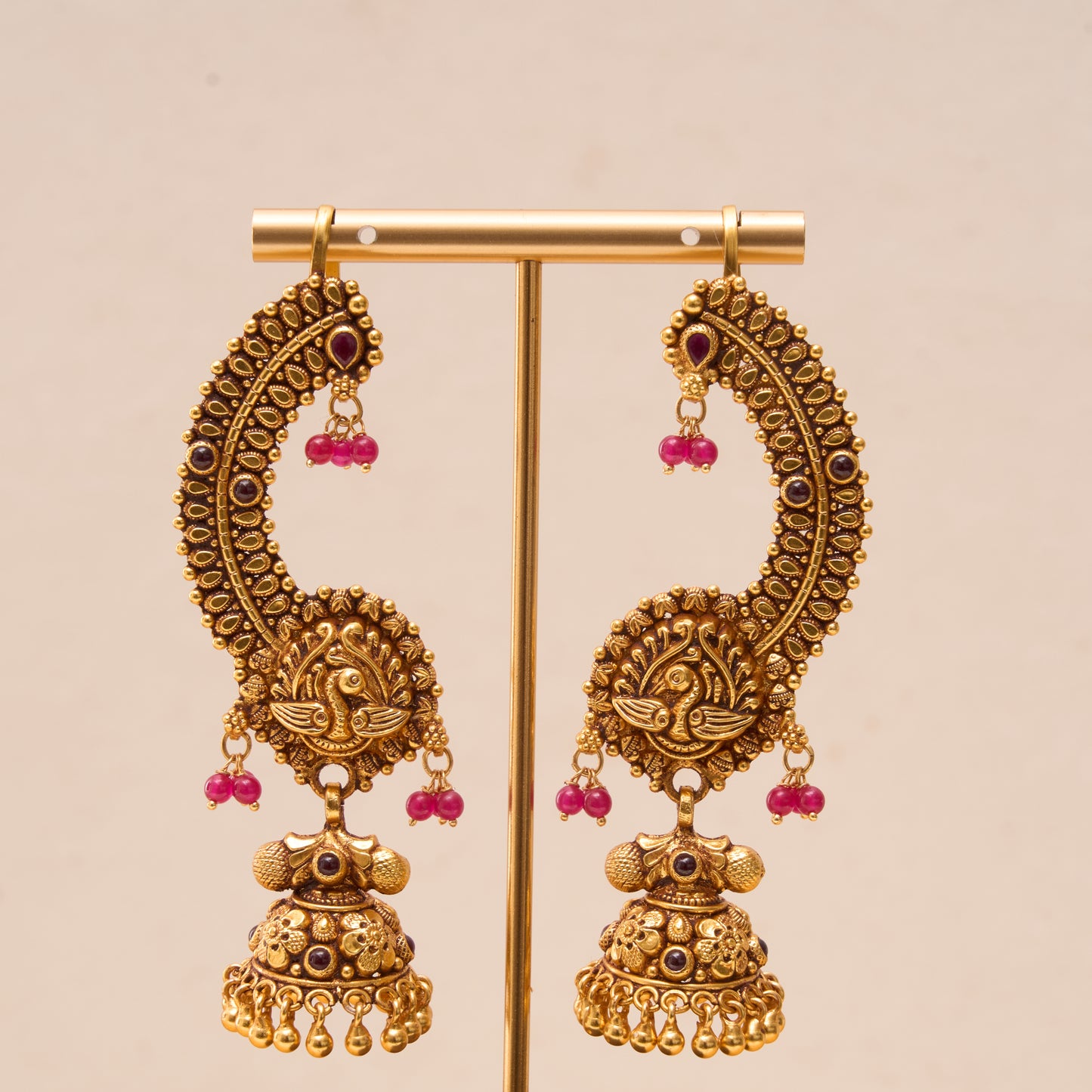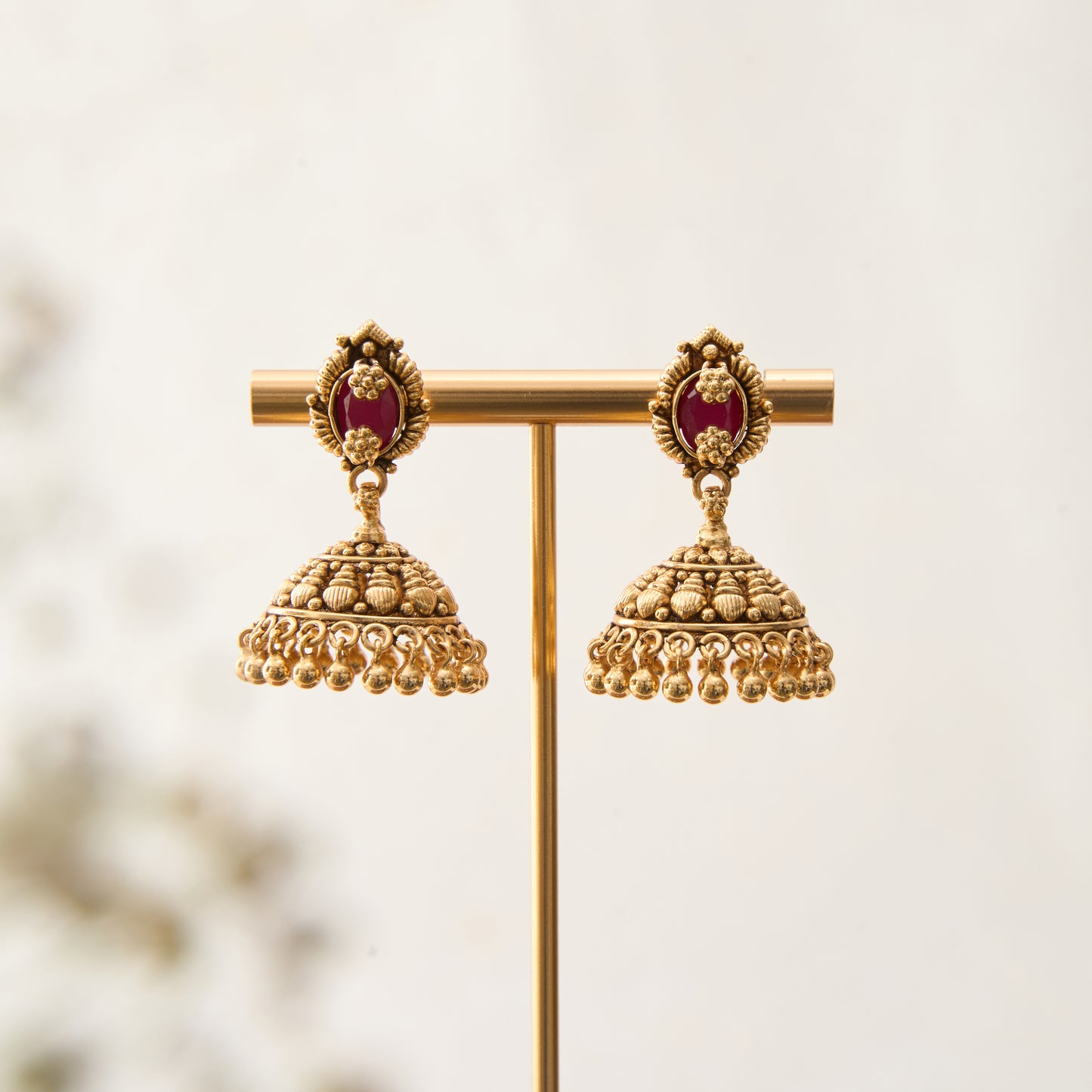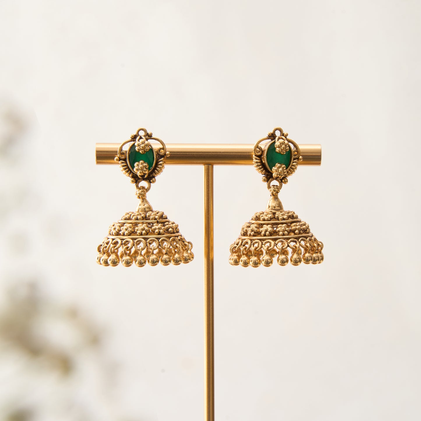 Explore gold plated and oxidized silver jhumka earrings crafted in premium 92.5 sterling silver, perfect for weddings, festive occasions and traditional wear. From classic temple designs to Victorian and Naga styles, these jhumkas bring timeless elegance to every look. Style these jhumka earrings with our Gold Plated Silver Choker Necklaces, Gold Plated Silver Harams, or Gold Plated Silver Necklaces for a complete traditional look.