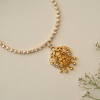 Enchanting Lakshmi Nagas White Stone Gold Plated Silver Necklace