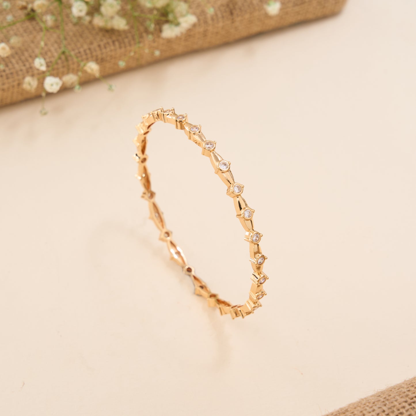 Glam Wave White Stone Gold Plated Bangle