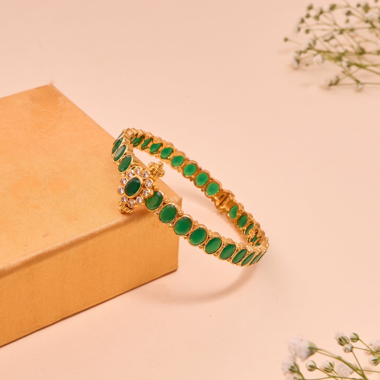 Ravishing Green Stone Floral Gold Plated Bangle