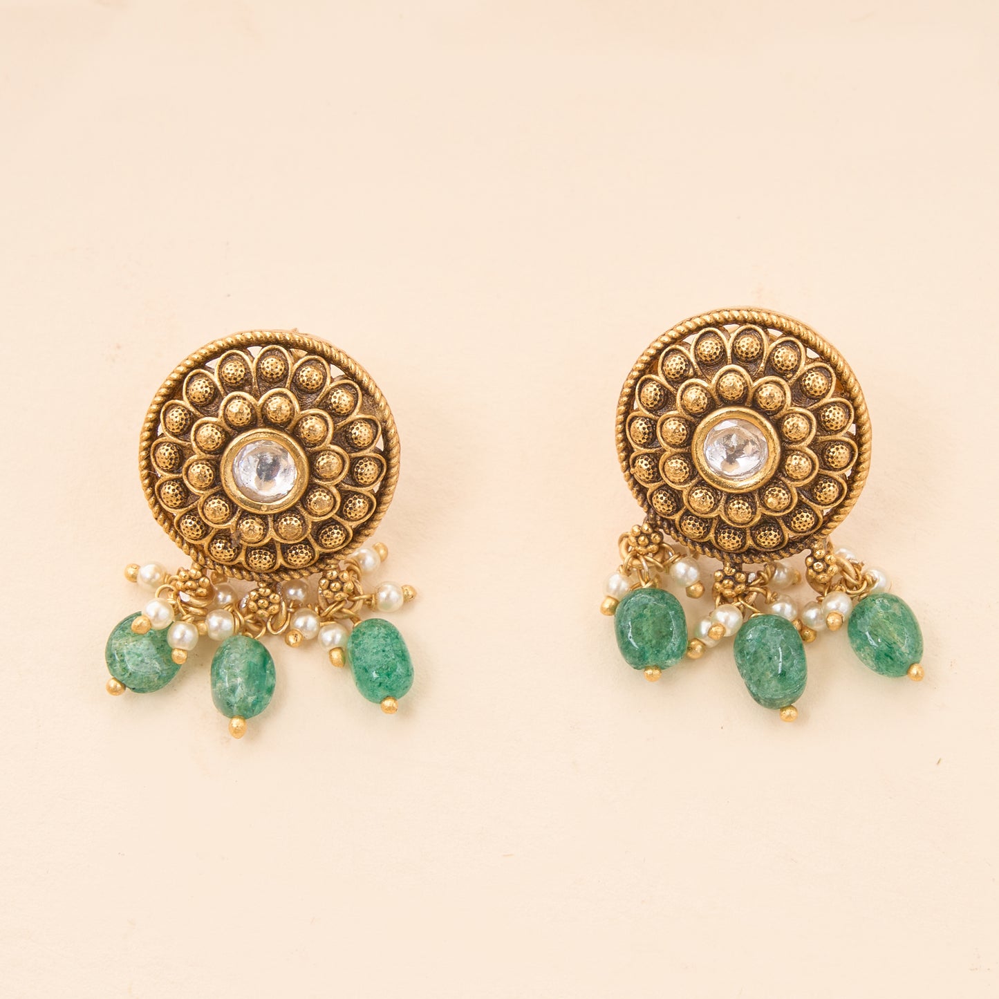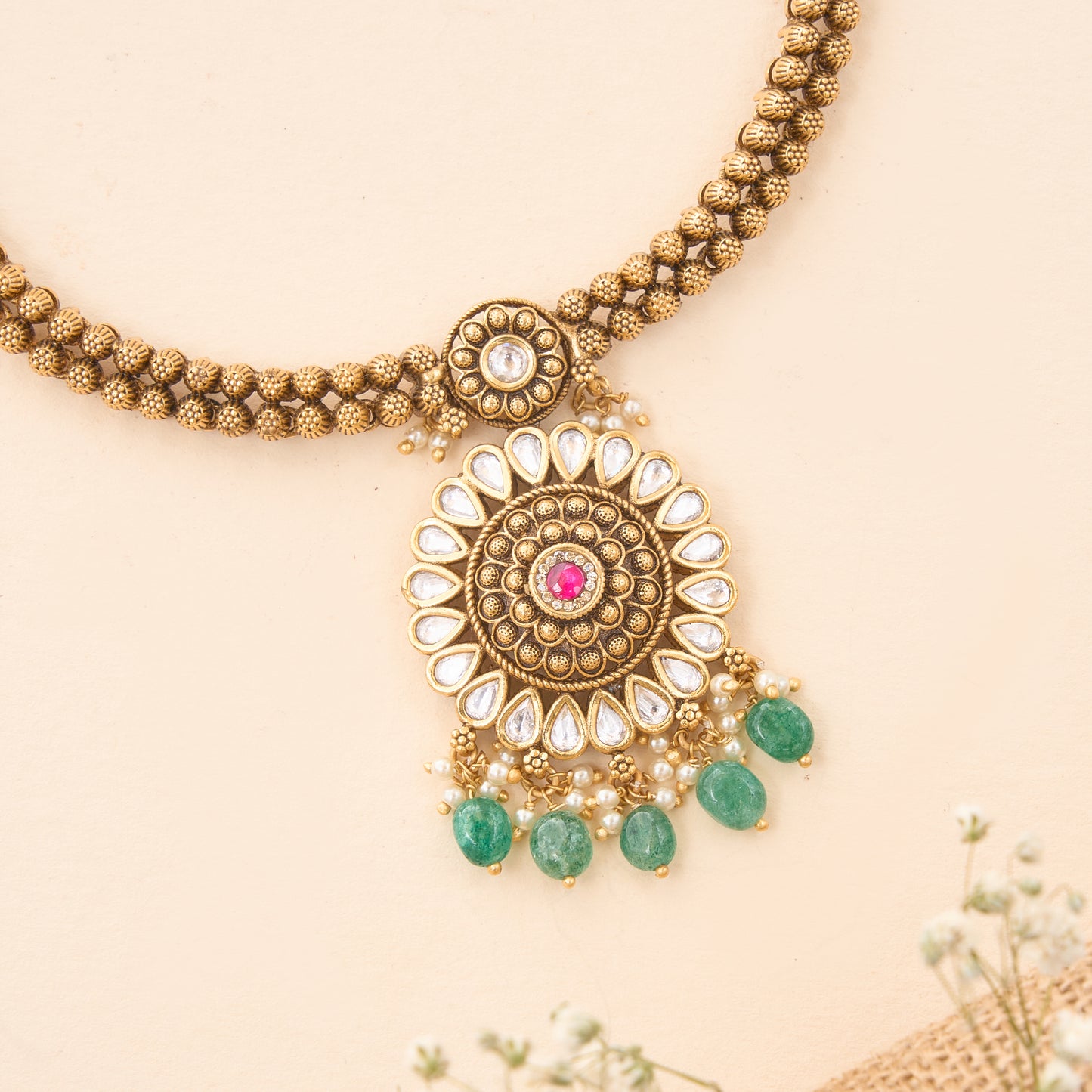 Eleganct Floral Heritage Gold Plated Necklace With Earrings